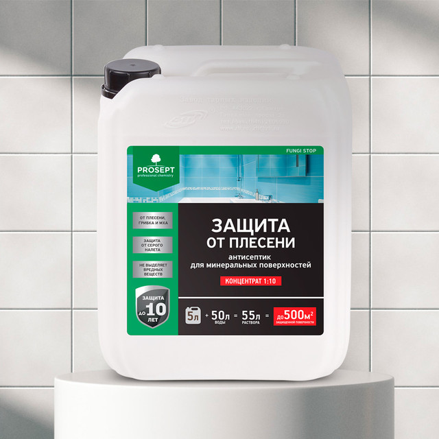 PROSEPT FUNGI STOP — антисептик для защиты любых строительных материалов. Эффективное средство для предотвращения развития плесени, грибка, мха, водорослей, на любых поверхностях.